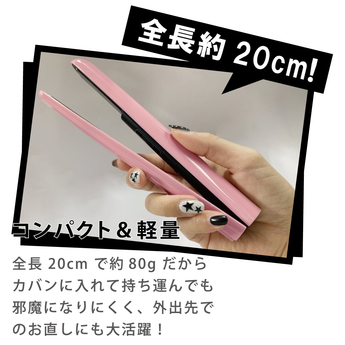 本体が全体的にコンパクトなので女性の手でも扱いやすく、プレート周辺は薄型設計なので、襟足や耳付近など、お顔まわりの細かい作業をスムーズに行えます。